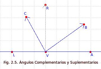 Dos ángulos son complementarios si la suma de sus amplitudes es 90°.